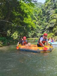 由于天然原生去雕飾的自然特點(diǎn),皇龍峽景區(qū)峽谷漂流河道河水清澈見(jiàn)底,冰涼清爽,非常適合在這個(gè)季節(jié)前往,讓雙腳泡在冰涼的河水中,使身心得以釋放。
